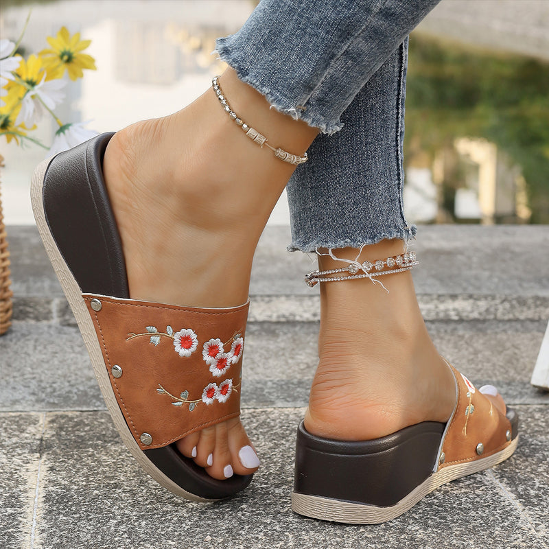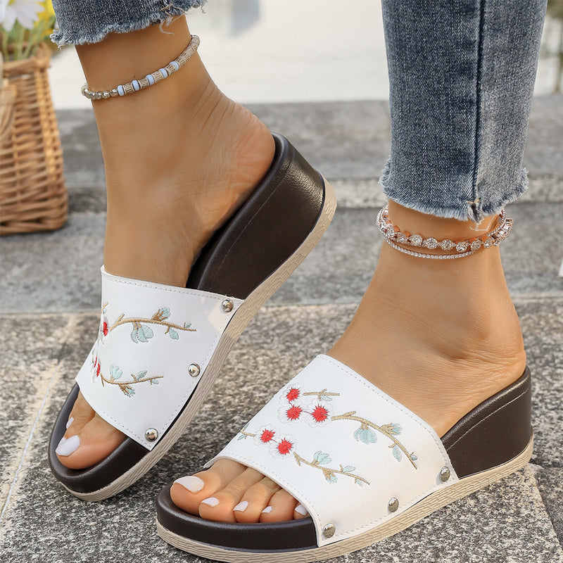 Το πακέτο περιλαμβάνει: 1* Casual Floral κεντήματα παχιά σόλα σανδάλια