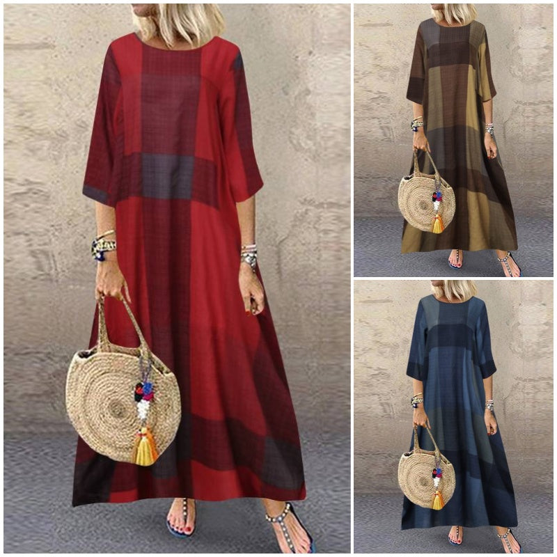 Το πακέτο περιλαμβάνει: 1 * Γυναικεία casual μακρυά φόρεμα με καρό σχέδιο και στρογγυλό λαιμό