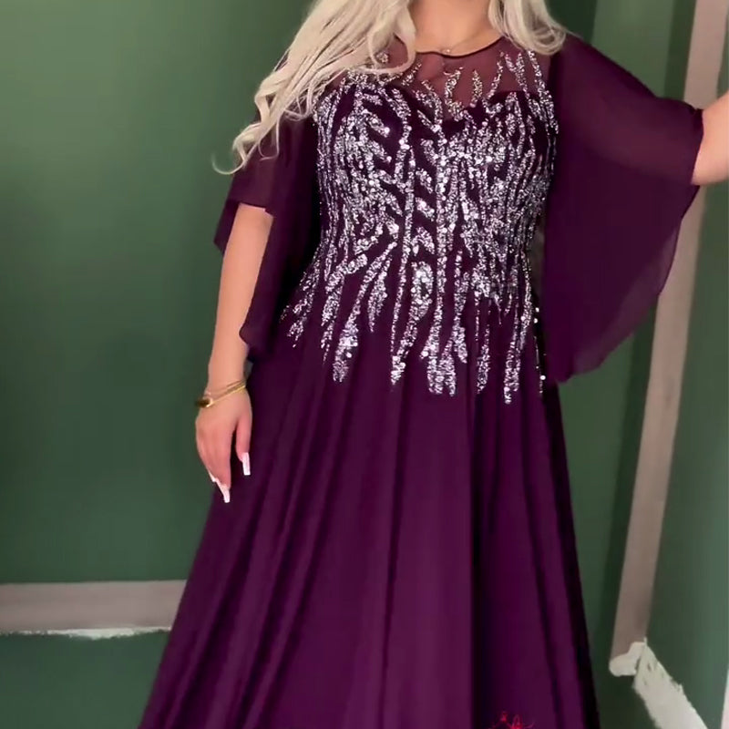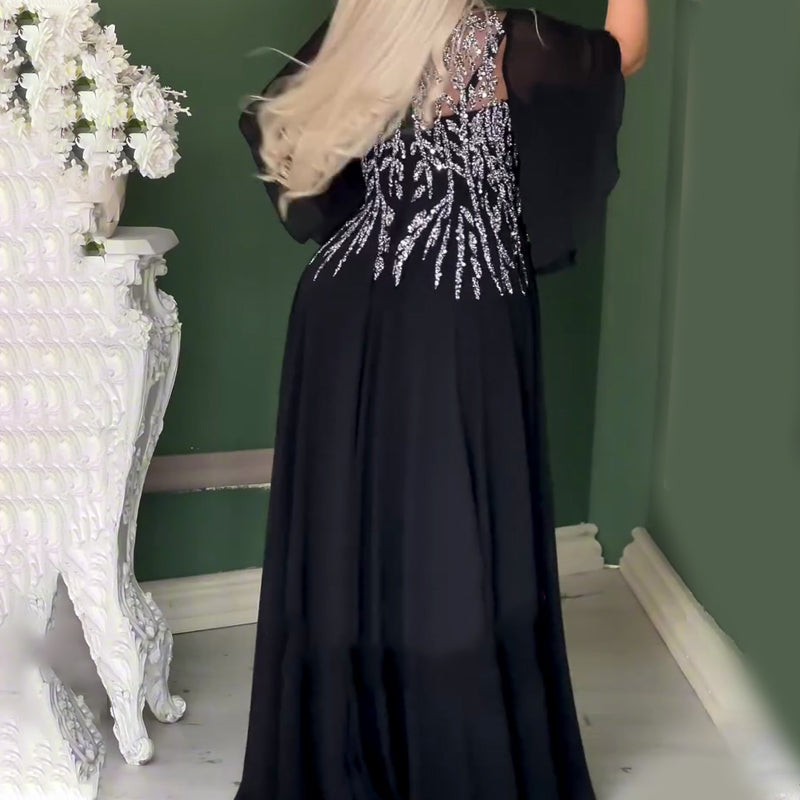 Το πακέτο περιλαμβάνει: 1 * Γυναικεία κομψά βραδινά φορέματα με στρας και στρογγυλό λαιμό