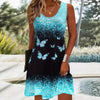 Χαλαρή στρογγυλή λαιμόκοψη και αμάνικο: Αυτό το φόρεμα διαθέτει ανοιχτή στρογγυλή λαιμόκοψη και χαλαρό αμάνικο κόψιμο, προσφέροντας την απόλυτη άνεση και ελευθερία, ιδανικό για να παραμείνετε φρέσκοι και κομψοί τις ζεστές μέρες ή τα βράδια.