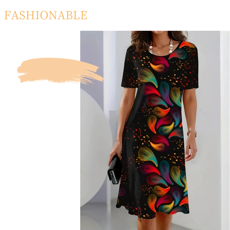 ΖΩΝΤΑΝΟ ΣΧΕΔΙΟ ΤΥΠΩΜΑΤΟΣ: Αυτό το φόρεμα διαθέτει ένα ζωντανό αλλά ισορροπημένο τύπωμα που προσθέτει μια πινελιά προσωπικότητας στην καθημερινή σας γκαρνταρόμπα. Το μοτίβο σε όλο το μήκος του φορέματος προσθέτει οπτικό ενδιαφέρον, καθιστώντας το ιδανικό για casual εξόδους, τακτοποιήσεις το Σαββατοκύριακο ή χαλαρές κοινωνικές εκδη
