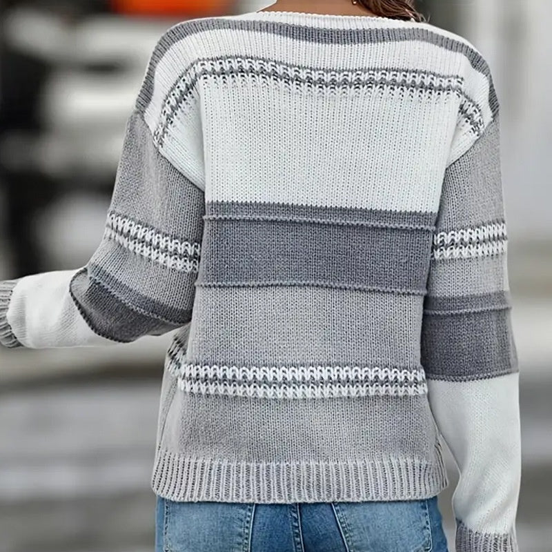 Το πακέτο περιλαμβάνει: 1×Μοντέρνο πλεκτό μπλουζάκι με V λαιμόκοψη και χρωματικό μπλοκ