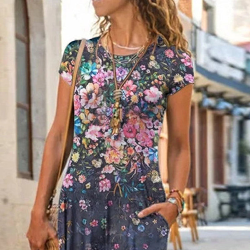 Το πακέτο περιλαμβάνει: 1 * Γυναικείο μακρύ φόρεμα με κοντό μανίκι και floral τύπωμα