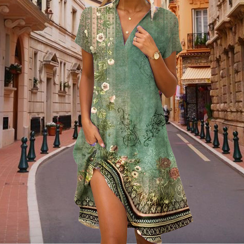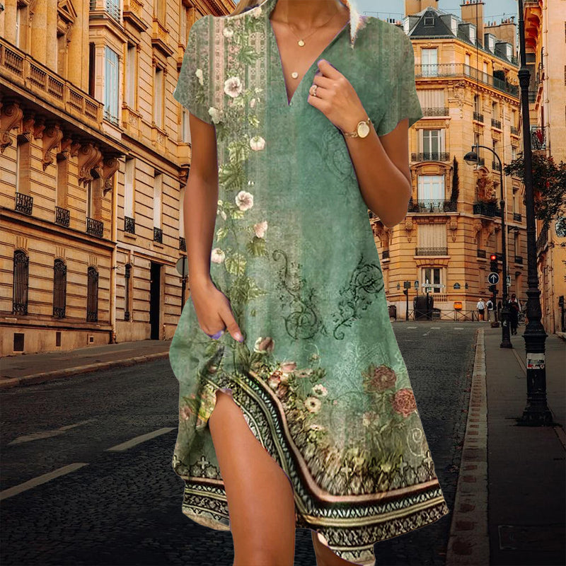 ΔΙΑΚΡΙΤΙΚΈΣ ΜΠΟΈΜΙΚΕΣ ΕΚΤΥΠΏΣΕΙΣ: Αυτό το φόρεμα συνδυάζει στοιχεία έθνικ και εξοχικού στυλ σε περίπλοκα, ζωηρά σχέδια. Το φρέσκο πράσινο σχέδιο με φλοράλ εκδοχή ξεχωρίζει με χαρακτήρα και στυλ.