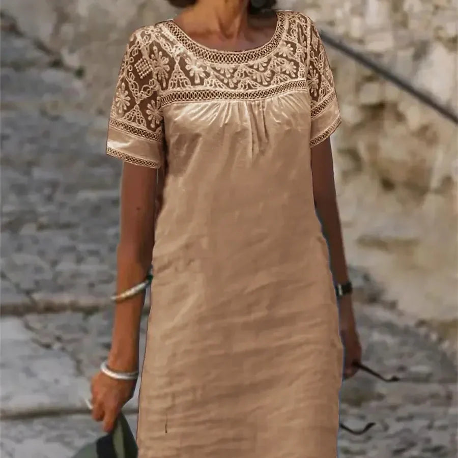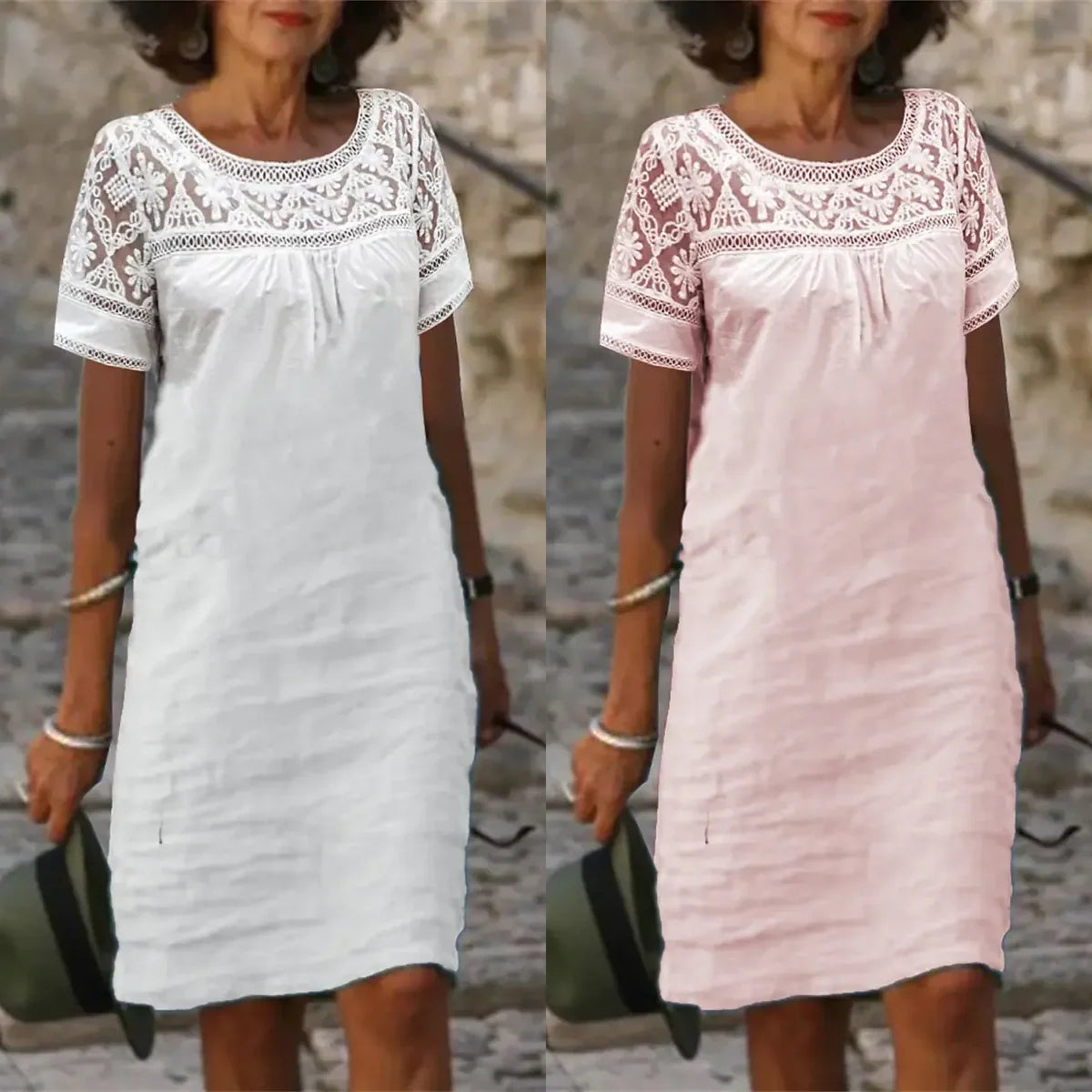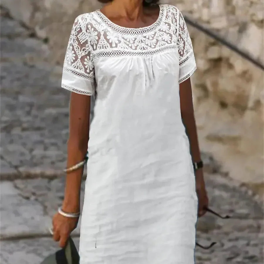 Το πακέτο περιλαμβάνει: 1* Γυναικείο casual φόρεμα με δαντέλα και στρογγυλό λαιμό