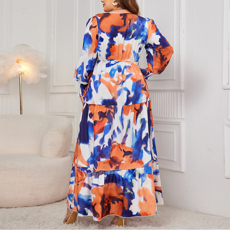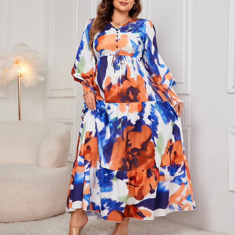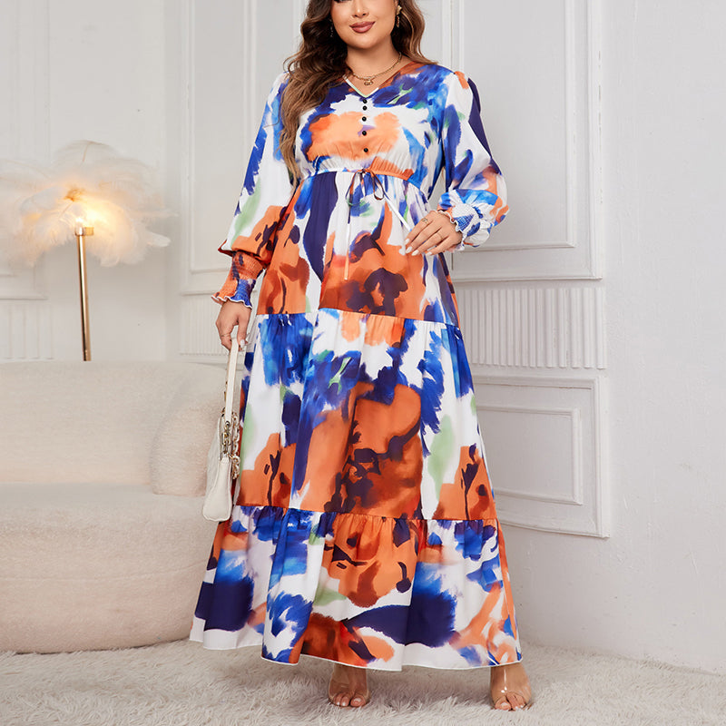 Το πακέτο περιλαμβάνει: 1×Γυναικείο φόρεμα μεγάλου μεγέθους με μακριά μανίκια και V λαιμόκοψη