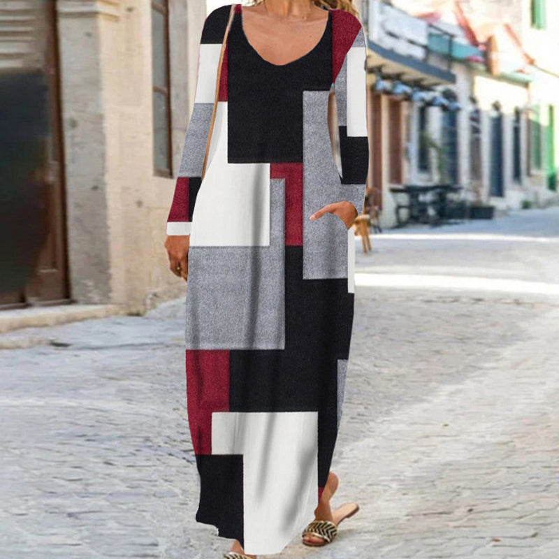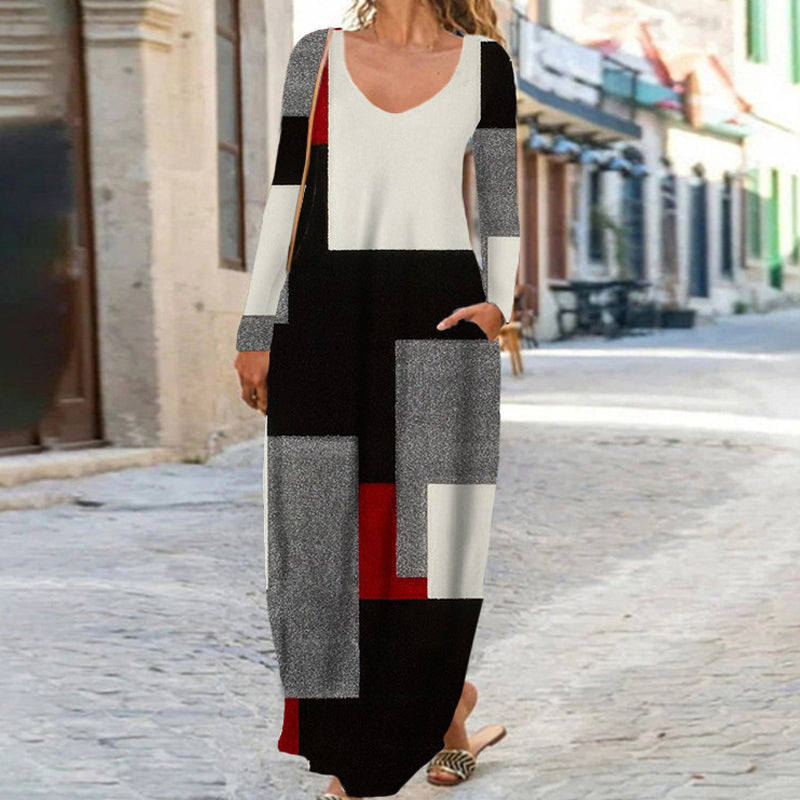 ΜΟΝΑΔΙΚΟΣ ΣΧΕΔΙΑΣΜΟΣ PATCHWORK – Ξεχωρίστε με ένα εντυπωσιακό γεωμετρικό μοτίβο patchwork που συνδυάζει τη σύγχρονη τέχνη με τη διαχρονική γοητεία. Κάθε λεπτομέρεια έχει τοποθετηθεί προσεκτικά για να δημιουργήσει ένα κολακευτικό οπτικό αποτέλεσμα, καθιστώντας το φόρεμα κομψό και ευέλικτο. Είτε φοριέται σε καθημερινές περιστάσεις είτε σε ειδικές εκδηλώσεις, αναβαθμίζει αβίαστα το στυλ σας.