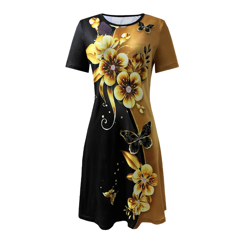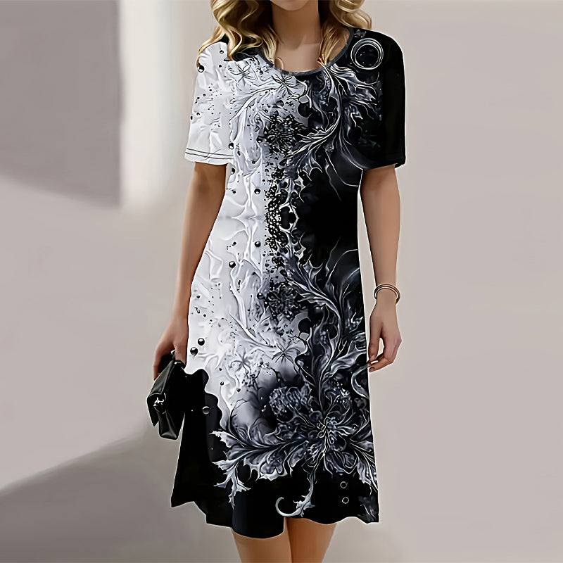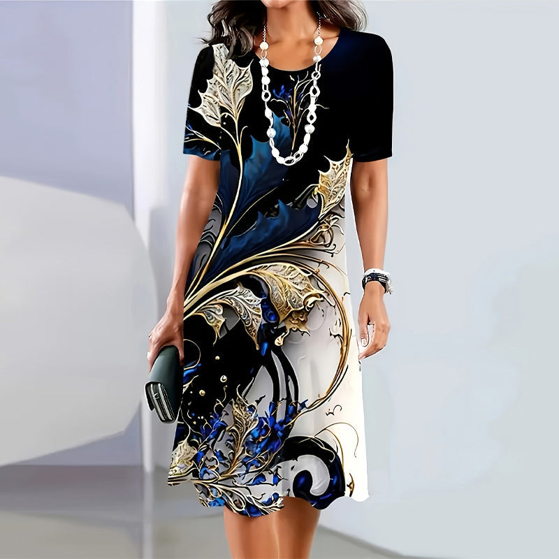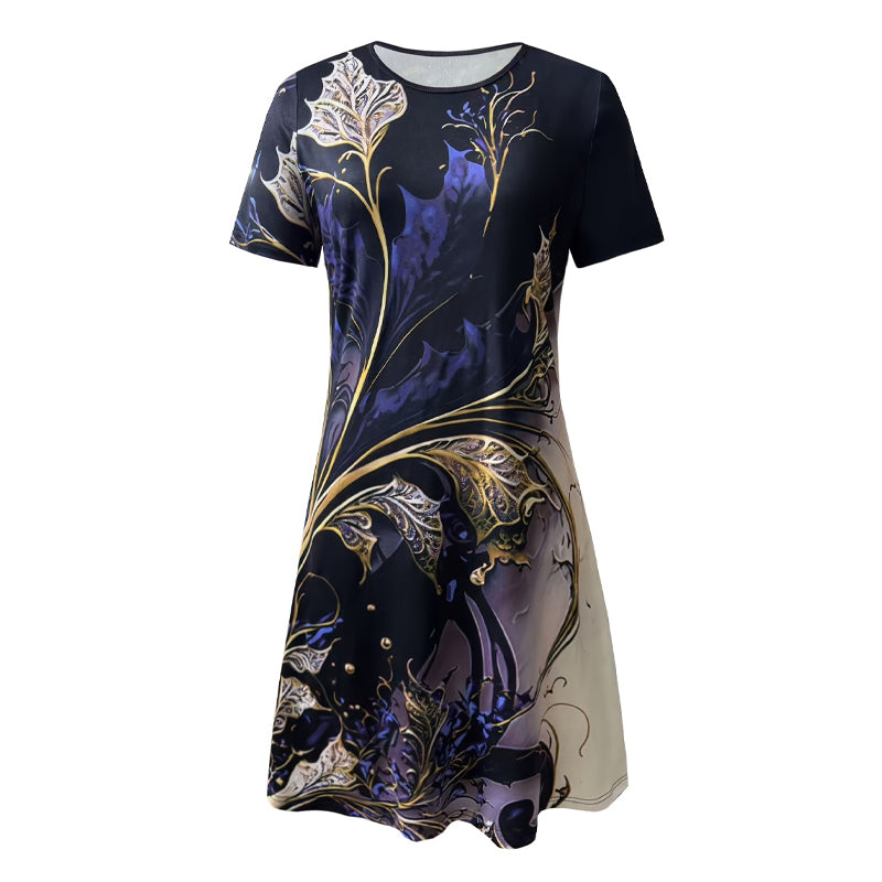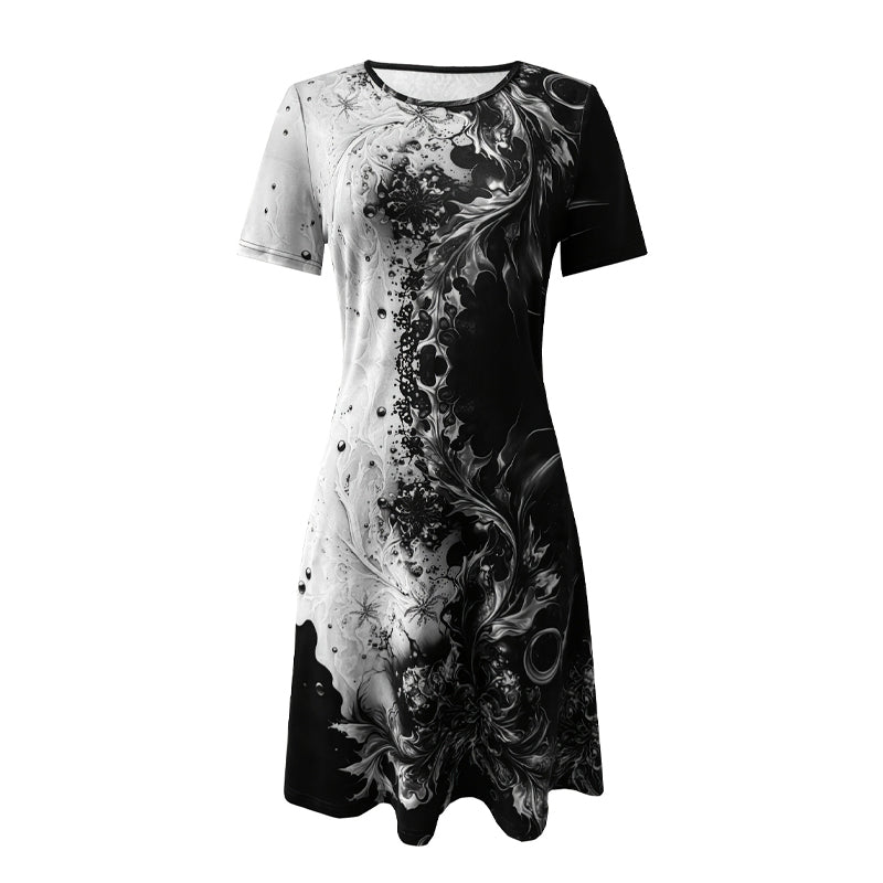 Το πακέτο περιλαμβάνει: 1* Γυναικείο casual φόρεμα με στρογγυλό λαιμό και τύπωμα