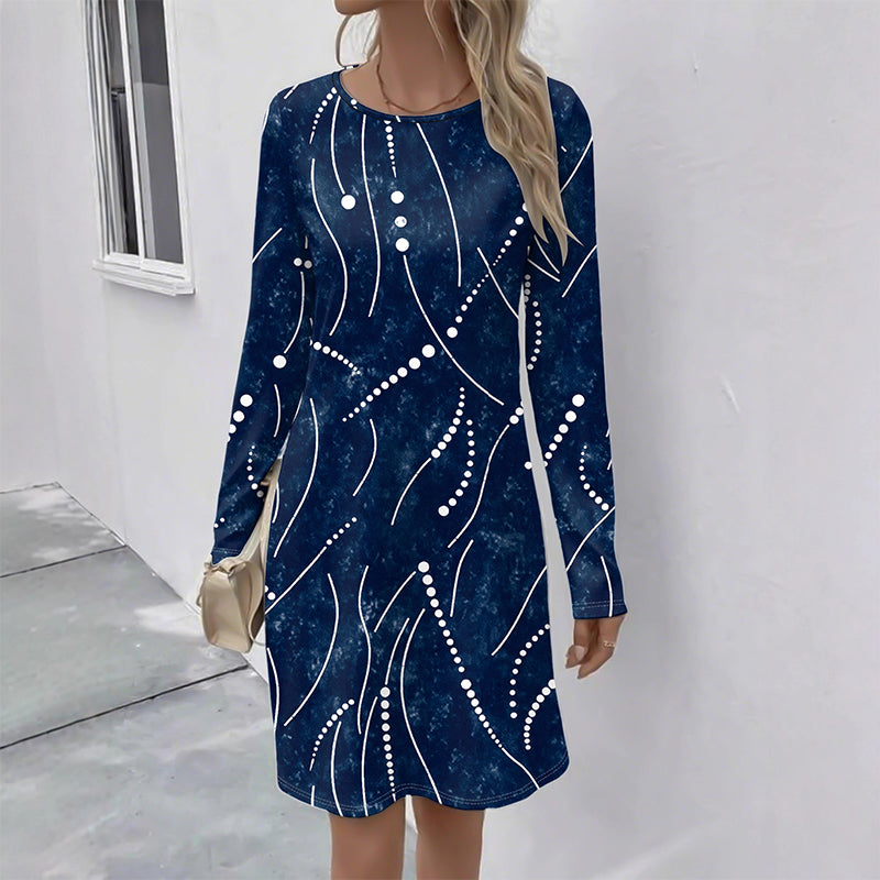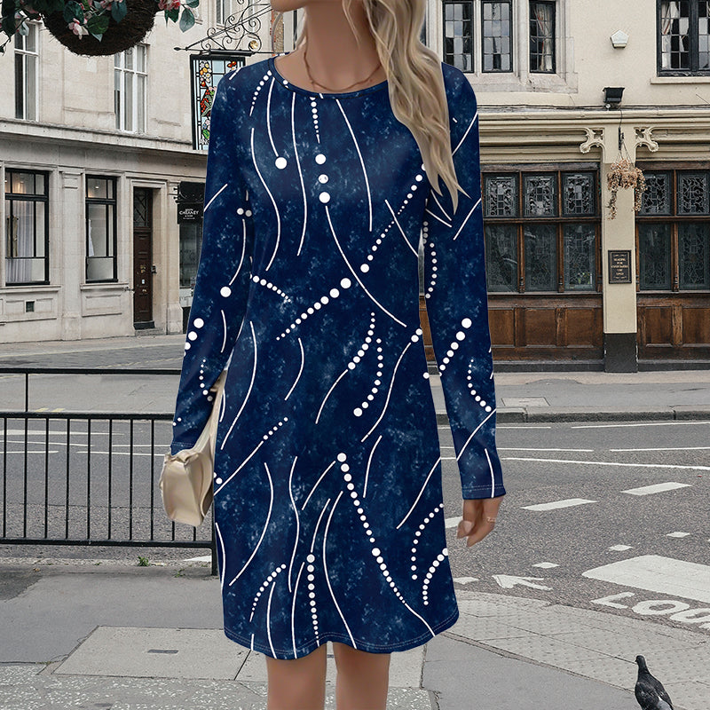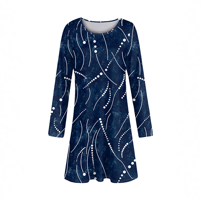 Package Includes: 1* Printed Round Neck Long Sleeve Dress