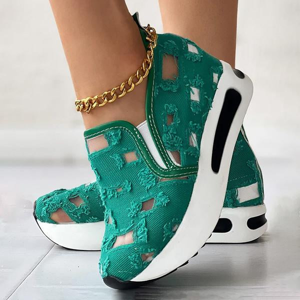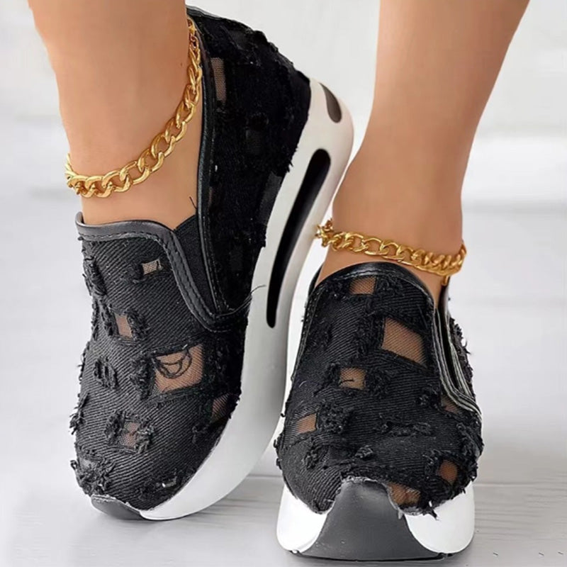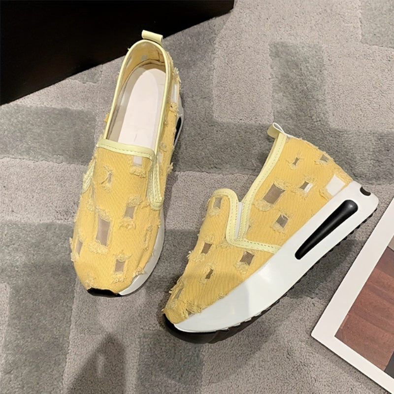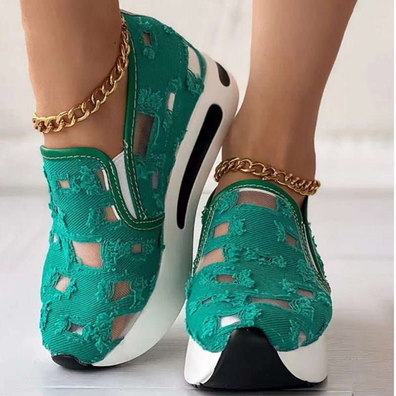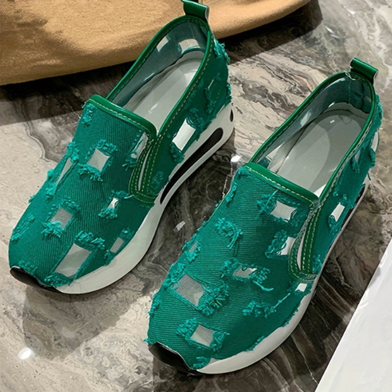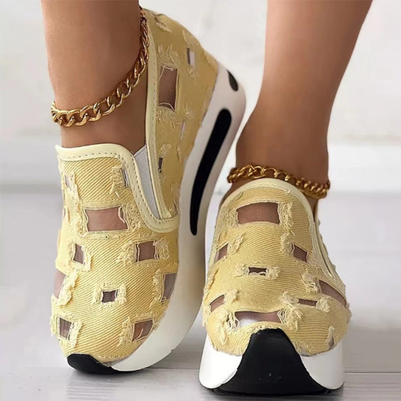 1 ζευγάρι x γυναικεία σανδάλια με χοντρή σόλα από πλέγμα καμβά