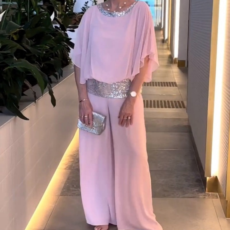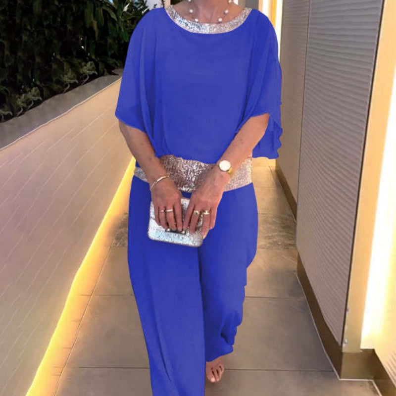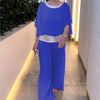 Περιεχόμενα συσκευασίας: 1 * Γυναικείο κομψό σετ δύο τεμαχίων με μπλούζα και παντελόνι με λεπτομέρειες από πούλιες