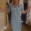 ΓΕΩΜΕΤΡΙΚΟ ΣΧΕΔΙΟ που τραβάει τα βλέμματα με ακριβή ευθυγράμμιση - Αυτό το φόρεμα διαθέτει ζωηρά γεωμετρικά μοτίβα που ρέουν απρόσκοπτα στις ραφές. Η προηγμένη τεχνολογία εκτύπωσης που διαθέτουμε εξασφαλίζει την τέλεια αντιστοίχιση των μοτίβων σε κάθε ραφή, διατηρώντας την έντονη αντίθεση και τα πλούσια χρώματα ακόμα και μετά από πολλαπλές πλύσεις. Τα υψηλής ποιότητας μελάνια αντιστέκονται στο ξεθώριασμα, το ράγισμα και το ξεφλούδισμα, διατηρώντας το σχέδιο φρέσκο και εντυπωσιακό με την πάροδο του χρόνου.