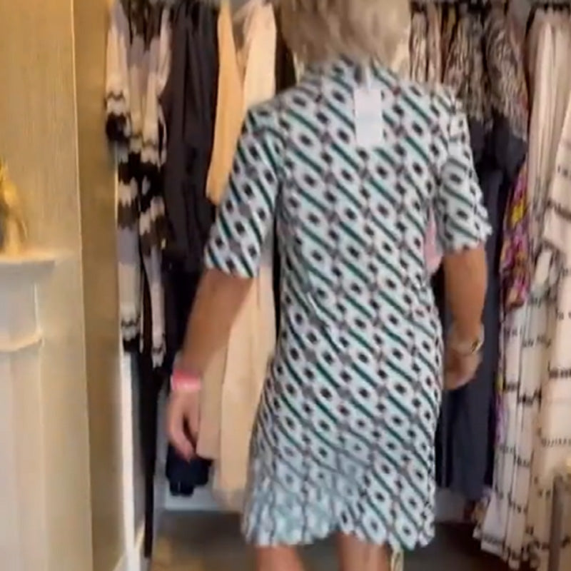 1 x Πουκάμισο κολάρο γεωμετρικό μοτίβο φόρεμα με κοντό μανίκι