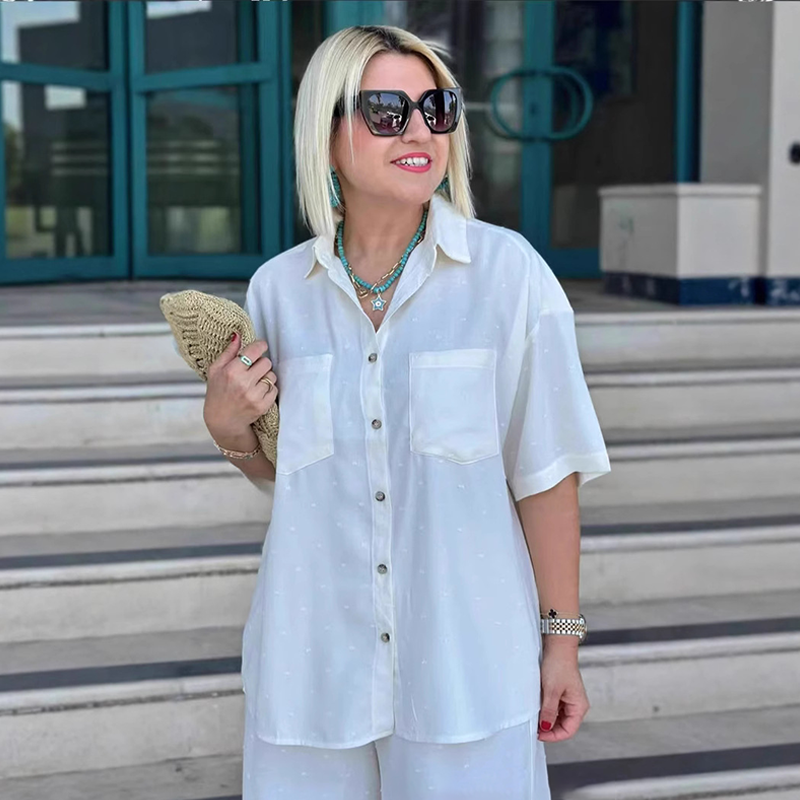 Το ανάμεικτο ελαφρύ ύφασμα προάγει την εξαιρετική ροή του αέρα, διατηρώντας παράλληλα την κάλυψη. Αυτό το ημιδιαφανές υλικό δημιουργεί μια κομψή εμφάνιση σε στρώσεις όταν φοριέται πάνω από το camisoles, προσφέροντας ηλιοπροστασία χωρίς να παγιδεύει τη θερμότητα κατά τη διάρκεια των ζεστών καλοκαιρινών ημερών.