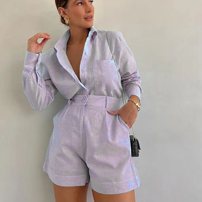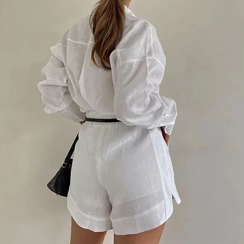 ΣΗΜΑΝΤΙΚΟ ΣΕΤ ΔΥΟ ΣΕΛΙΔΩΝ - Αυτό το κομψό σύνολο περιλαμβάνει ένα μακρυμάνικο πουκάμισο και ένα σορτσάκι σχεδιασμένα για μια συντονισμένη, μοντέρνα εμφάνιση που μεταβαίνει απρόσκοπτα από το καθημερινό ένδυμα στη βραδινή κομψότητα.