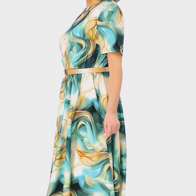 Περιεχόμενα συσκευασίας: 1 × Κομψό γυναικείο φόρεμα με μοντέρνο μοτίβο, κοντά μανίκια και ζώνη