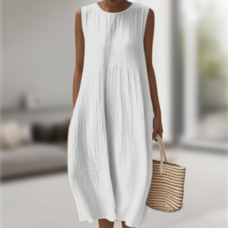 Τα καθαρά, μονόχρωμα χρώματα και το απλό κόψιμο δημιουργούν μια κομψή εμφάνιση που δεν απαιτεί καμία προσπάθεια. Ο αμάνικος σχεδιασμός και η σιλουέτα σε γραμμή Α κολακεύουν διάφορους σωματότυπους, προσφέροντας διαχρονικό στυλ με μοντέρνα απλότητα.