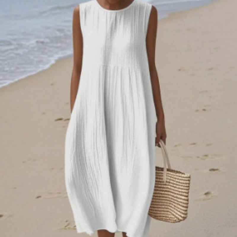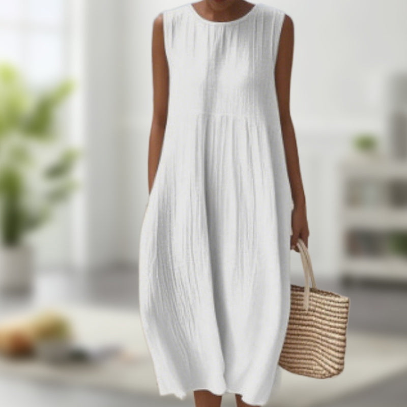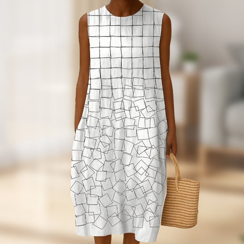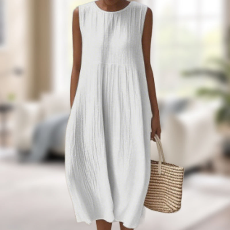 Με ελαφρώς ελαστικό και χαλαρό κόψιμο, αυτό το φόρεμα προσφέρει άνεση από το πρωί μέχρι το βράδυ. Είτε περπατάτε, είτε κάθεστε, είτε εξερευνείτε, κινείται μαζί σας, χωρίς ποτέ να κολλάει ή να περιορίζει την κίνησή σας.