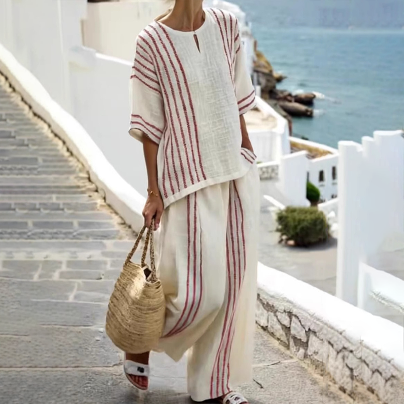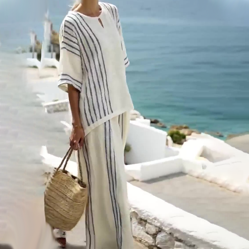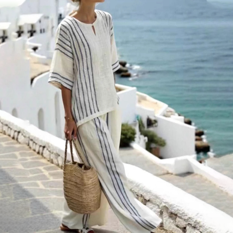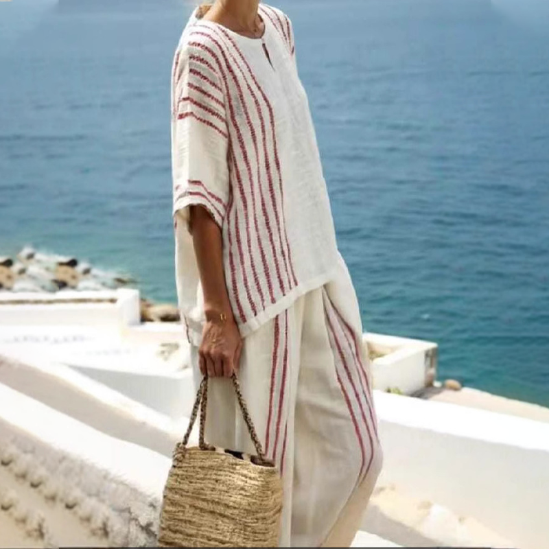 Το πακέτο περιλαμβάνει: 1* Γυναικείο Casual ριγέ τοπ & Παντελόνι 2-κομμάτι σετ