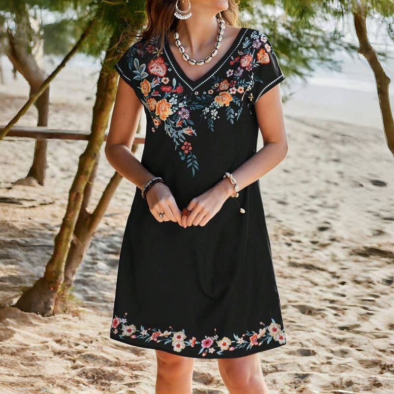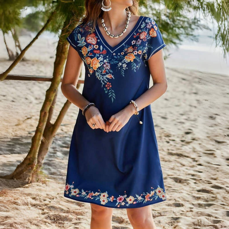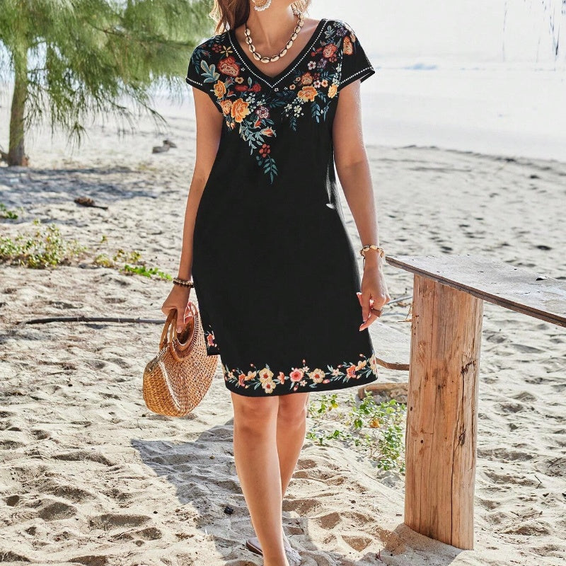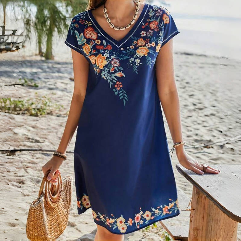 Το πακέτο περιλαμβάνει: 1×Κομψό φόρεμα με λουλούδια και V λαιμόκοψη