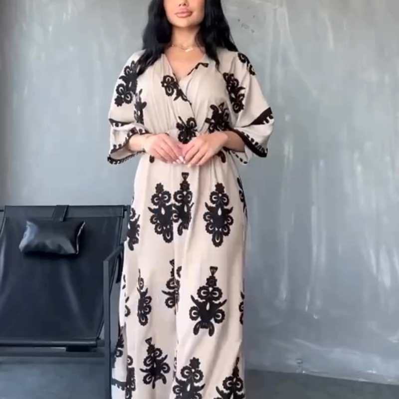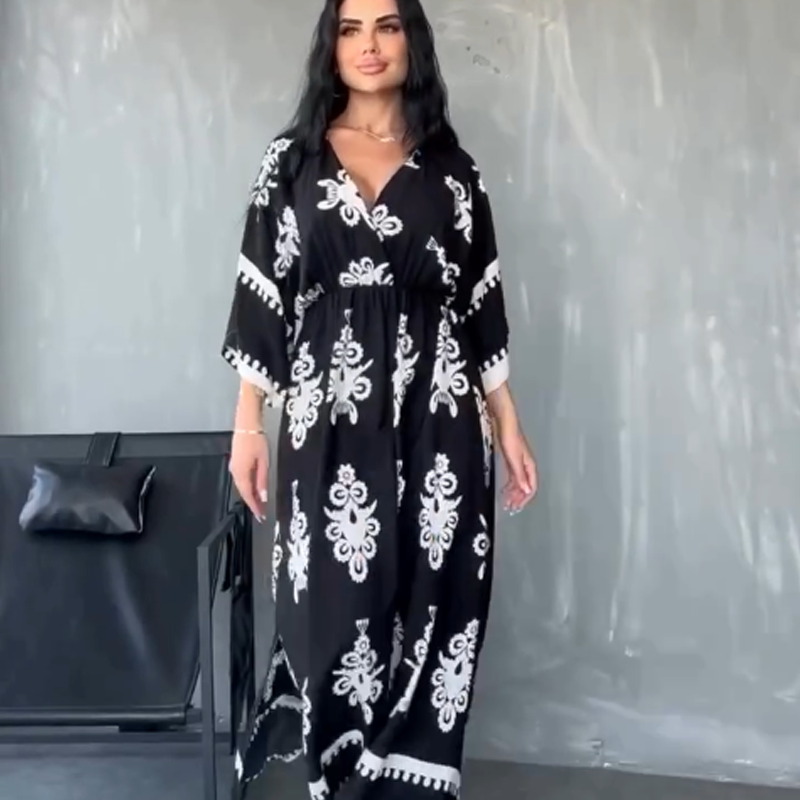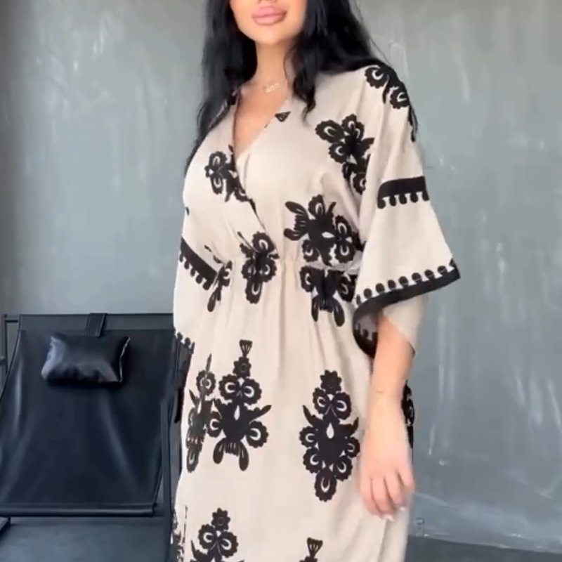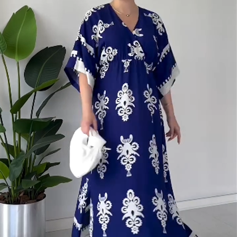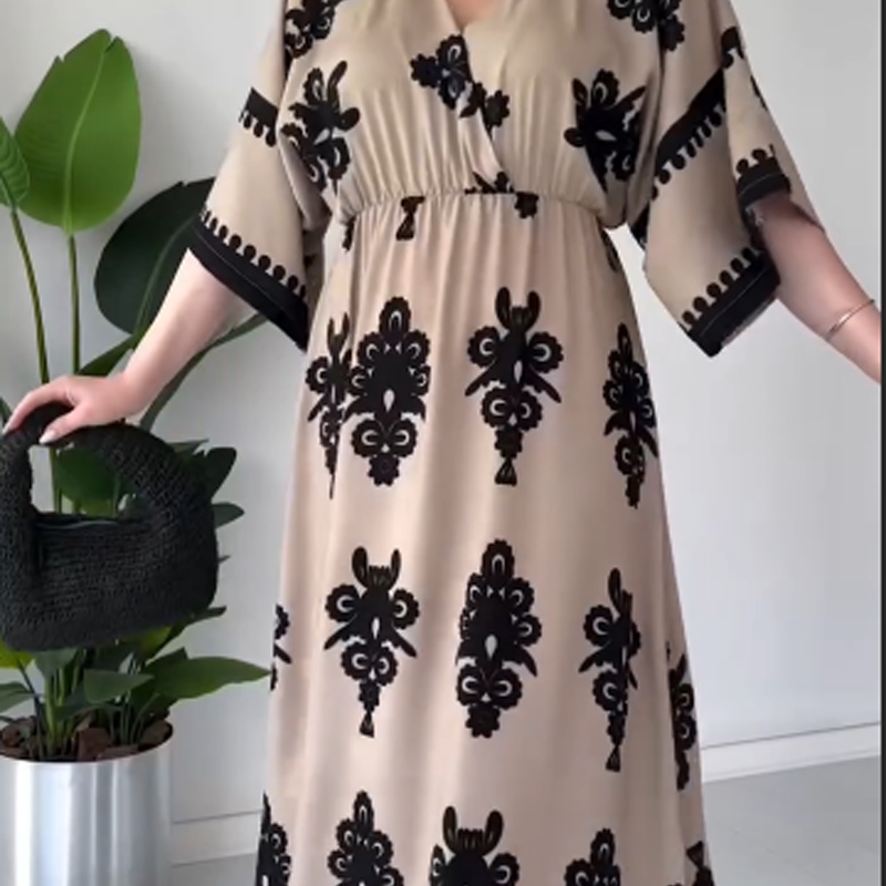 Το πακέτο περιλαμβάνει: 1* Γυναικεία κομψά τυπωμένα φορέματα με V-λαιμό  ,