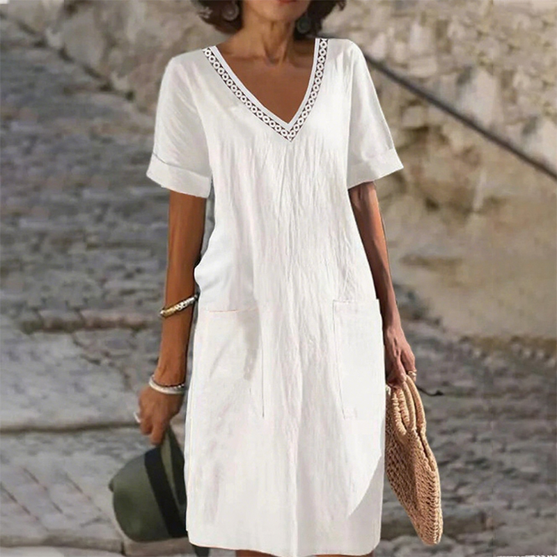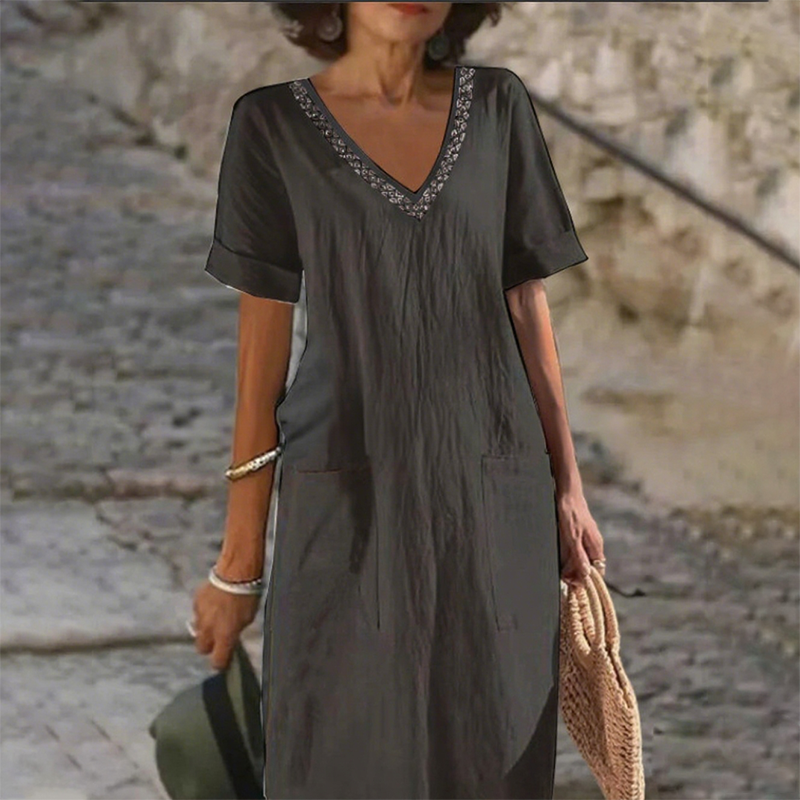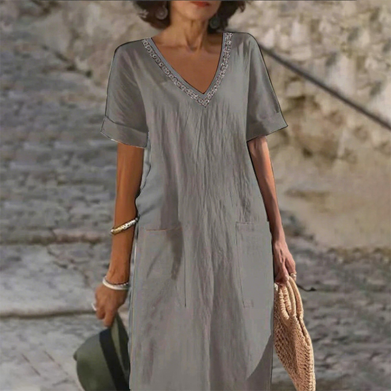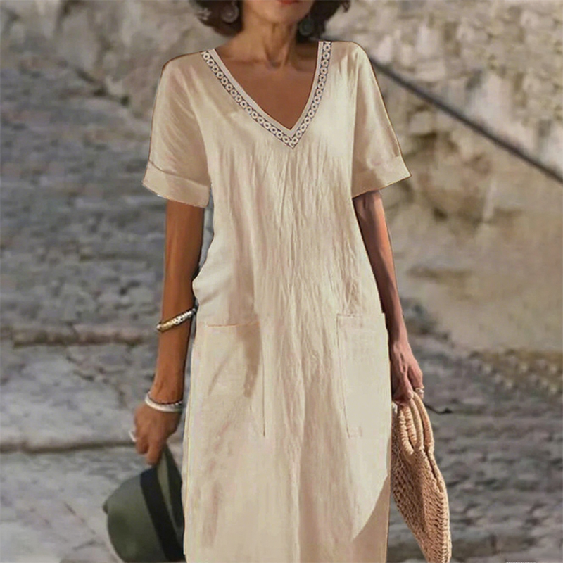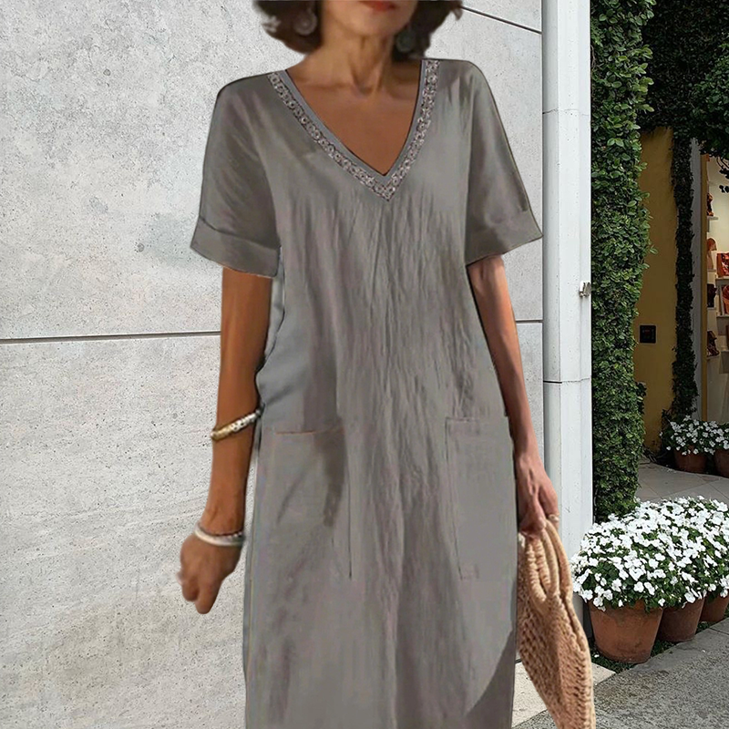 Το πακέτο περιλαμβάνει: 1* Γυναικείο casual φόρεμα με V λαιμόκοψη