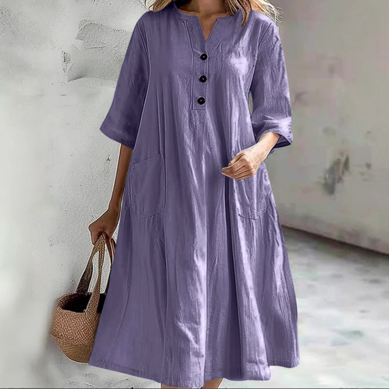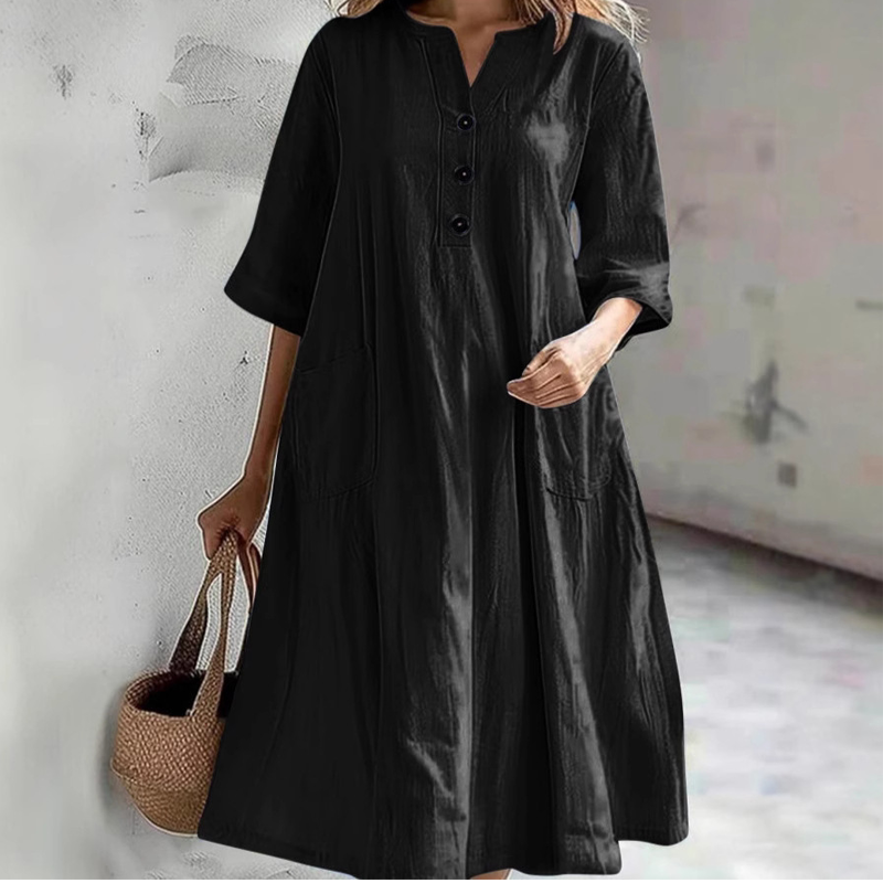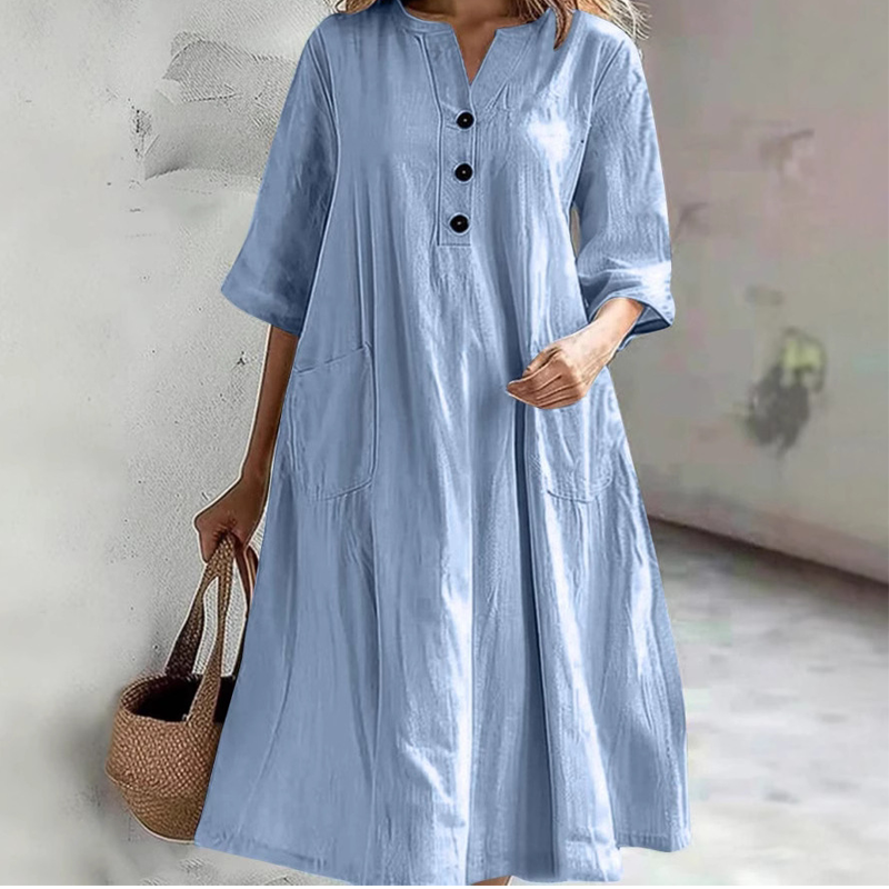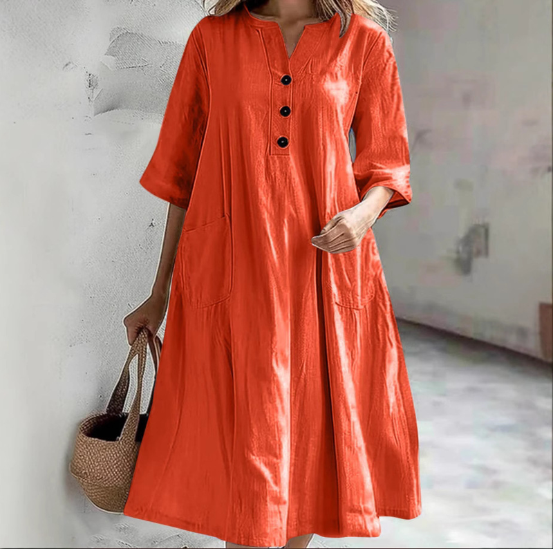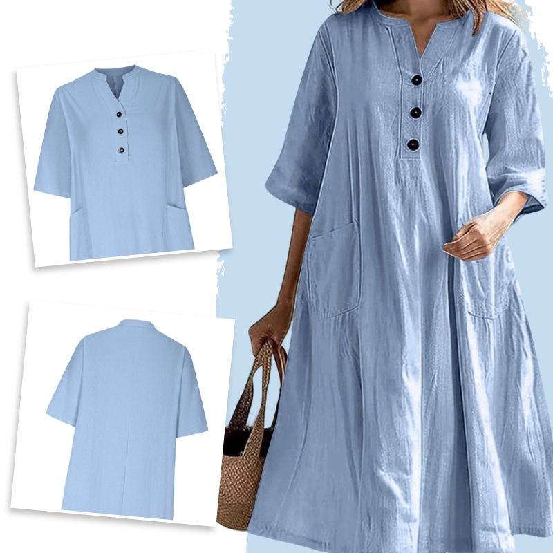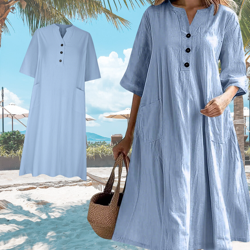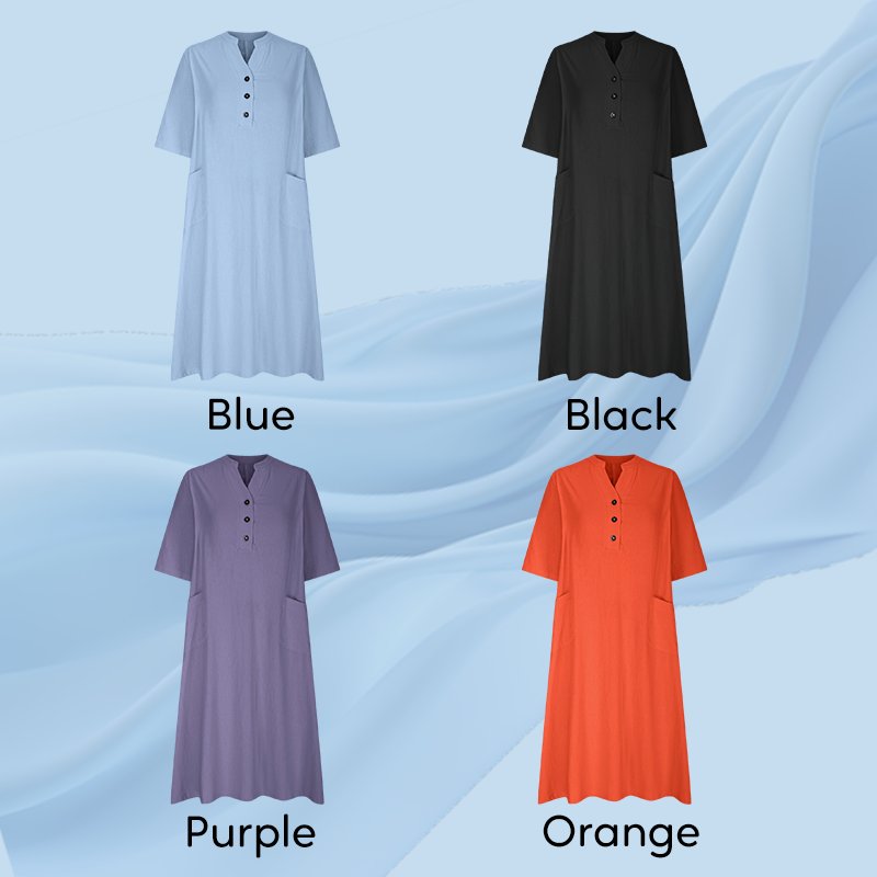 BUZUNARELE LATERALE FUNCȚIONALE: Buzunarele laterale practice adaugă confort rochiei, permițându-vă să păstrați la îndemână obiecte mici, cum ar fi telefonul sau portofelul.