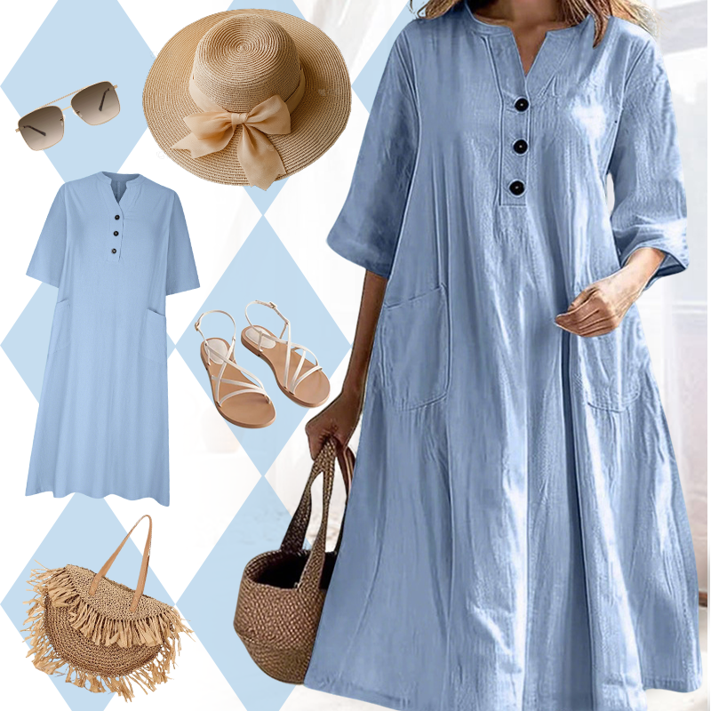ȚESUT SOFT ȘI CONFORTABIL: Fabricată dintr-un amestec moale de bumbac și poliester, această rochie este respirabilă și ușoară, oferind confort maxim, ceea ce o face ideală pentru zilele mai calde.
